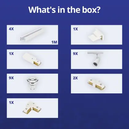 Complete Set 1-Phase Rail L 2 x 2 Meter White | incl. 9x Spot + GU10 2700K 3W Dimmable + End Cap, Power Connector and L -Connector