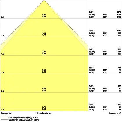 The colour code is a combination of colour rendering (CRI) and light colour (Kelvin). The first number indicates the colour rendering (1 = very poor colour rendering, 9 = maximum colour fastness). The second and third number contains the light colour. Example: the colour code 830 consists of good colour rendering (8) and warm white light (3000K). |