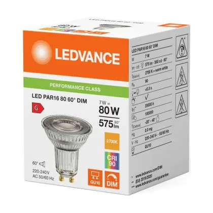 Ledvance LED PAR16 GU10 Reflector 7W 575lm 60D - 927 Extra Warm White | Best Colour Rendering - Dimmable - Replaces 80W
