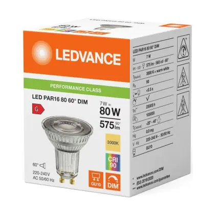 Ledvance LED PAR16 GU10 Reflector 7W 575lm 60D - 930 Warm White | Best Colour Rendering - Dimmable - Replaces 80W