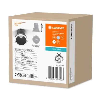 Ledvance LED Spot Twist Pro Aluminium Black Reflector 5W 350lm 30D - 840 Cool White | 70mm - Cutout 65mm - IP20