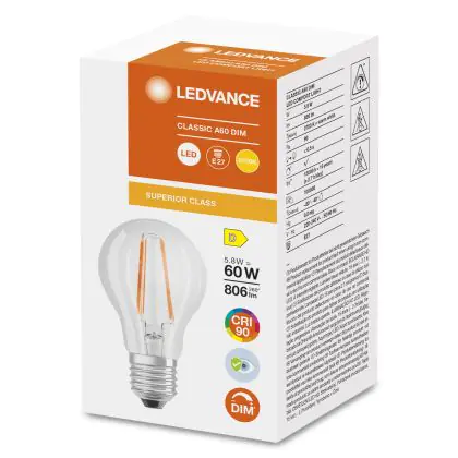 Ledvance Superior Classic LED E27 Pear Filament Clear 5.8W 806lm - 927 Extra Warm White | Dimmable - Best Colour Rendering