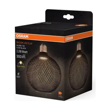 Osram Decor Flat Lamp In Metal Housing LED E27 Globe Frosted Black 3.5W 300lm - 827 Extra Warm White | Replaces 25W