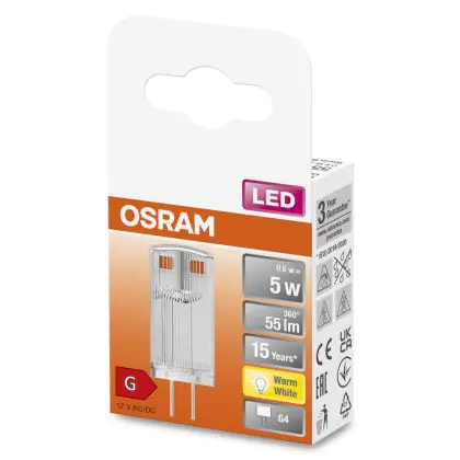 Osram LED Capsule G4 Clear 0.6W 55lm - 827 Extra Warm White | Replaces 5W