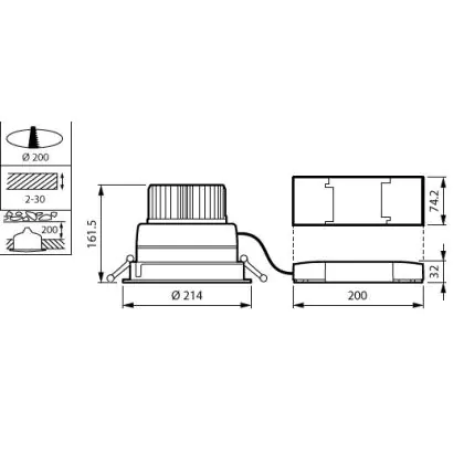Philips LED Downlight LuxSpace Compact Low Height DN570B VLC-E 52.8W 6200lm 80D - 830 Warm White | 214mm - Aluminium Reflector - Dali Dimmable